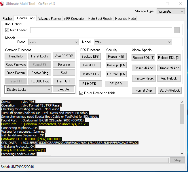Found Port : Qualcomm HS-USB QDLoader 9008 (COM31)Driver Info : Qualcomm Incorporated, qcusbser.sys, 2.1.2.0